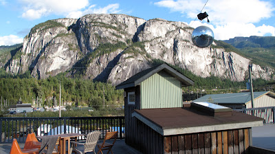 My patio, the Chief, and the disco ball. I rigged this one with care: on loan to me from Hevy Duty's living room, it's the original (circa 1970) from the old Squamish bowling alley.
